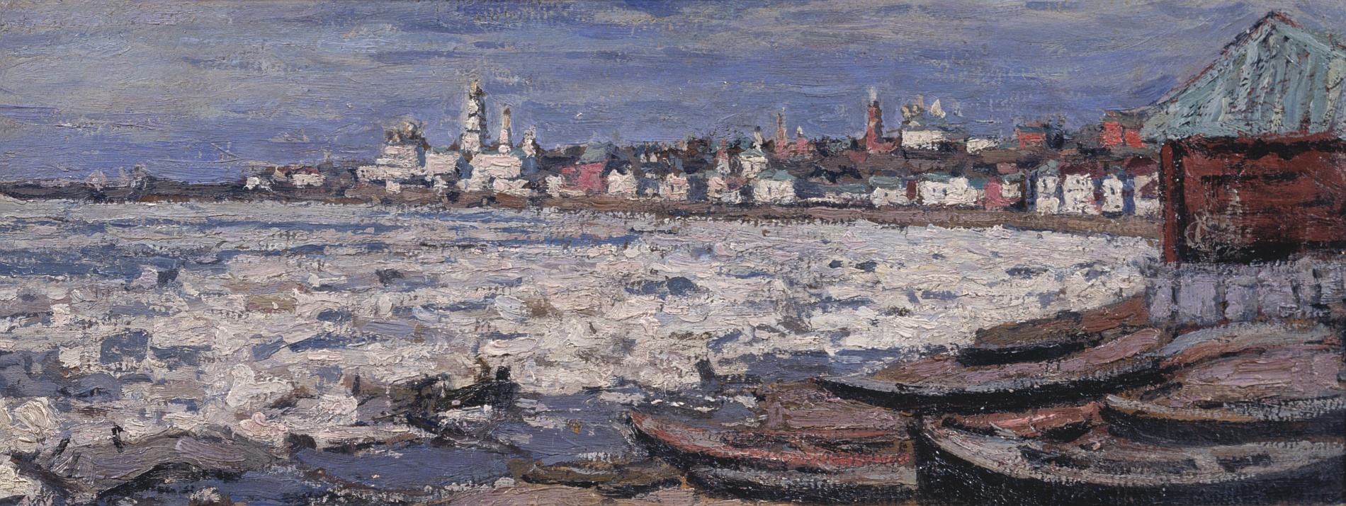 ВМИИ предоставил для участия в выставке три произведения: «Осужденный» (1879) Владимира Егоровича Маковского (1846-1920), «Рабочие в ожидании парохода на Волжской пристани» (1888) Сергея Арсеньевича Виноградова (1869-1938) и «Ледоход на Волге близ Ярославля» (1912) Петра Ивановича Петровичева (1874-1947).