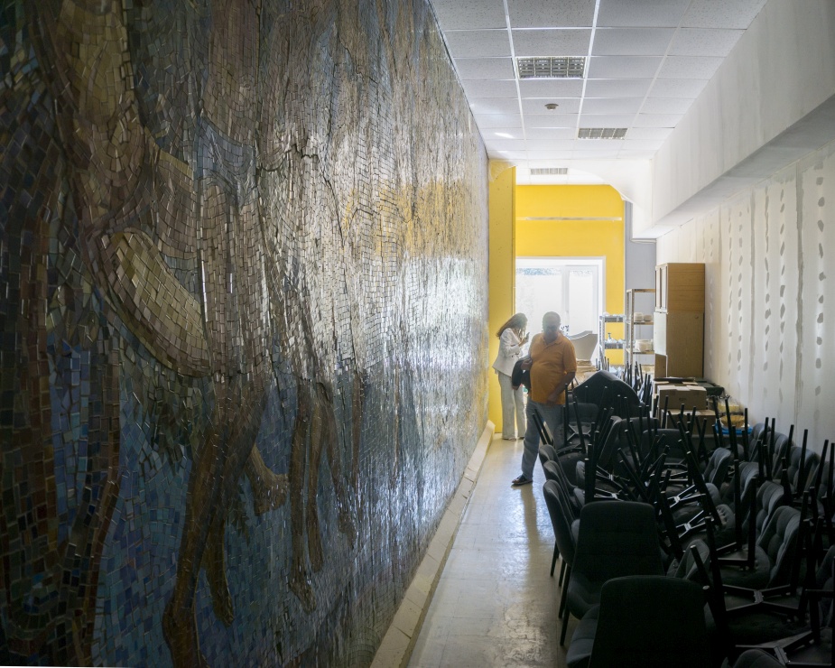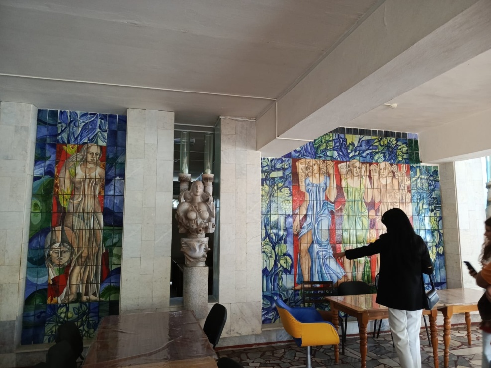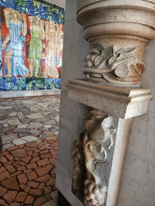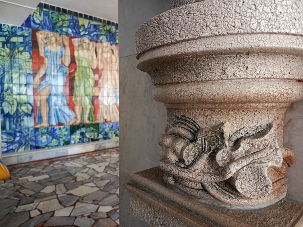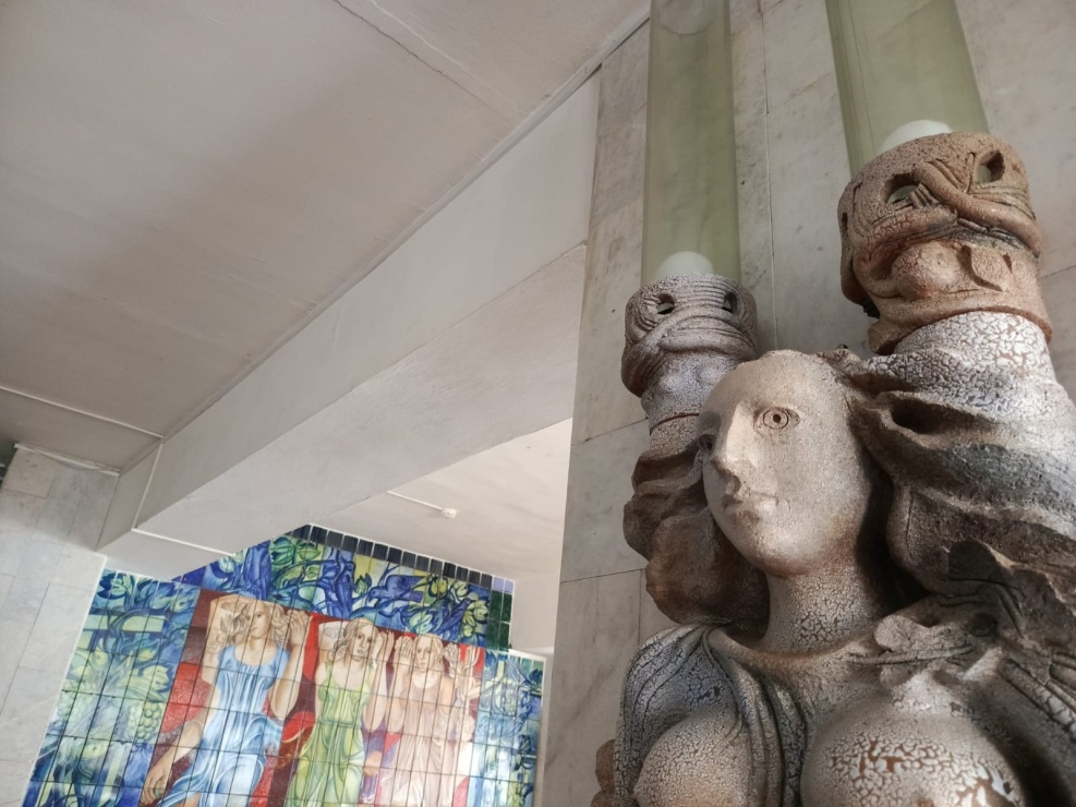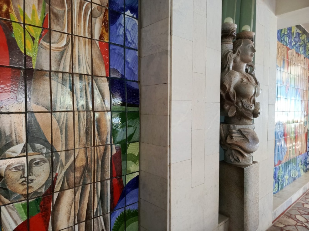 Другому произведению декоративно-прикладного искусств авторства Чаплыгина, повезло больше. Женские фигуры, выполняющие роль больших декоративных светильников, украшают вестибюль и столовую, в столовой находится мозаичный триптих. Эти работы никто не закрывает, наоборот, они являются украшением интерьера и выглядят очень привлекательно.