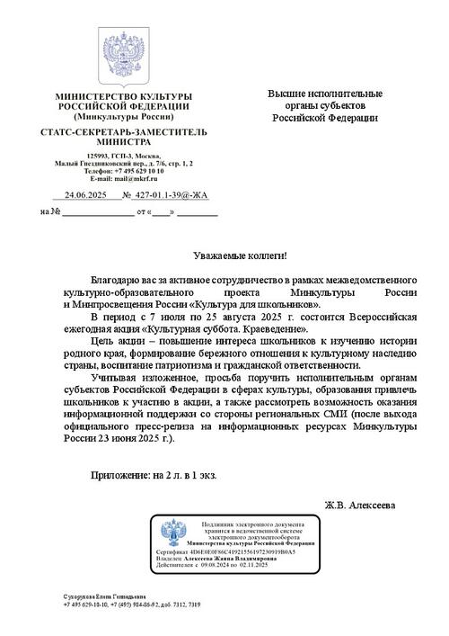 7 июля в рамках межведомственного культурно-образовательного проекта «Культура для школьников» стартует всероссийская ежегодная акция «Культурная суббота. Краеведение», направленная на популяризацию традиций народов России.