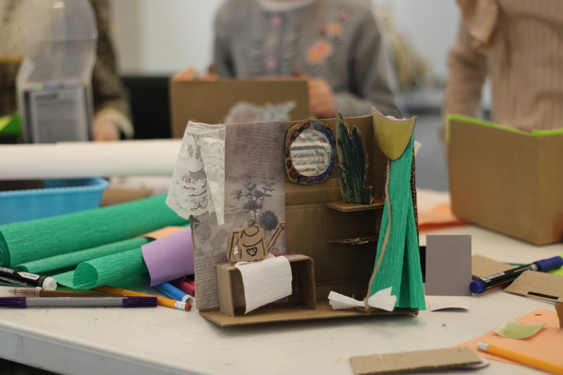 На мастер-классе мы сделаем композиции по мотивам рассмотренных произведений. Предлагаем объёмную работу из картона и бумаги придумать в виде интерьера с букетом, а также порисовать цветы восковыми мелками, кот орые оформим в открытки.