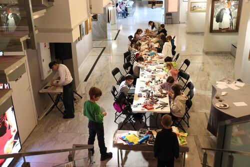 На мастер-классе предлагаем нарисовать большую стройку, а её героев сделать подвижными – в виде бумажных кукол-марионеток. А на экспозиции можно будет поделать зарисовки с понравившихся произведений! Как и всегда будем работать разными материалами: фломастеры, карандаши, восковые мелки, а также подготовим печатные штампы и трафареты.