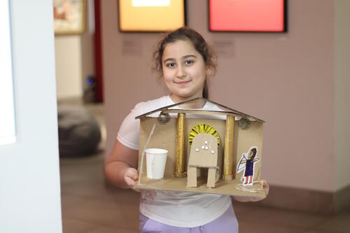 На мастер-классе предлагаем придумать своё строение со стройным рядом колонн! Мы будем работать с картоном разной фактуры, использовать гуашь и маркеры. Также ребята получат небольшую карту заданий, которую смогут заполнить самостоятельно, гуляя по улицам города.