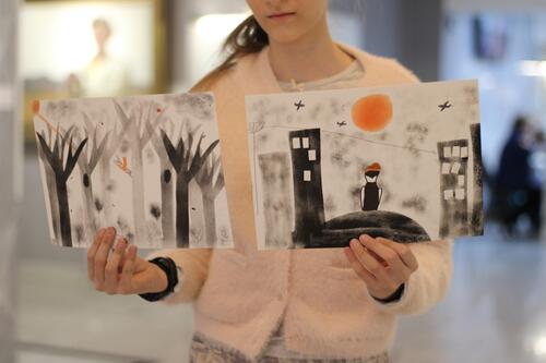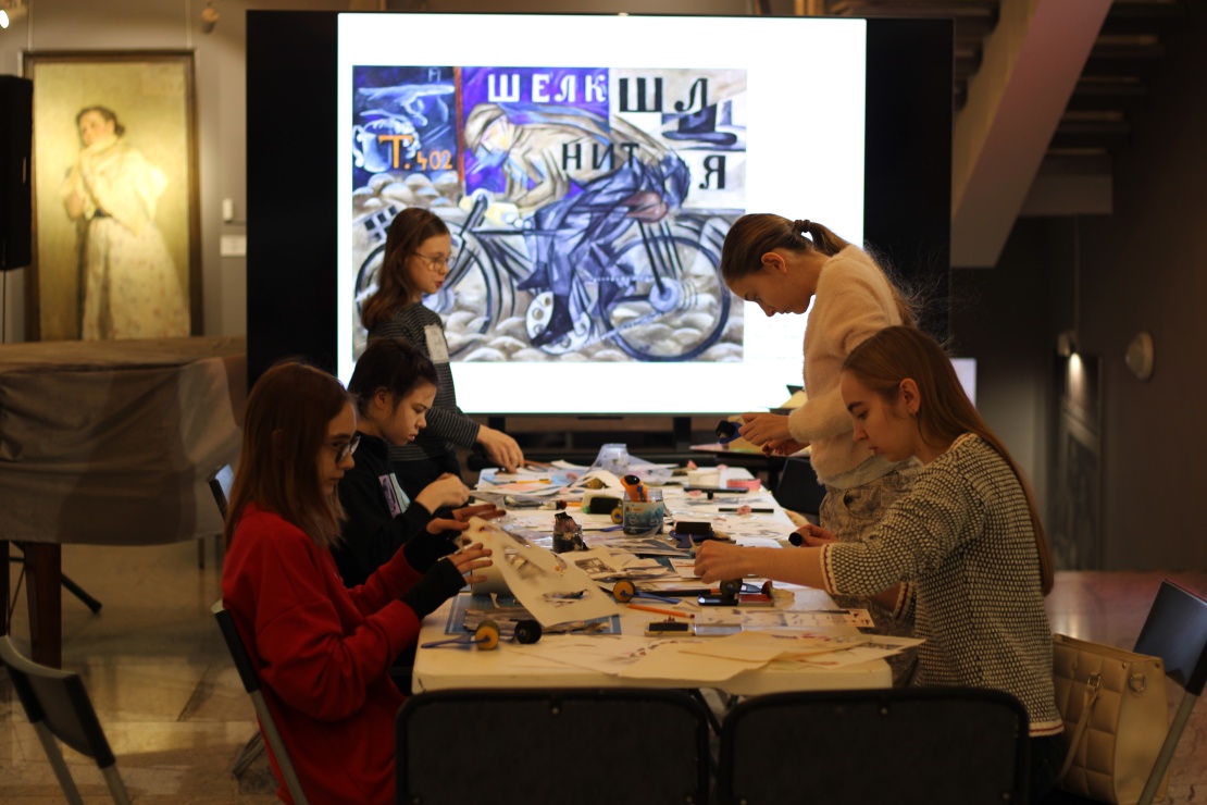 На мастер-классе можно будет создать свою композицию по мотивам увиденных произведений. Можно будет работать в смешанной технике – рисовать или использовать технику коллажа. А ещё мы предлагаем использовать трафаретную печать с дорисовкой. Для этого мы вырежем силуэт на бумаге, а пустоты заполним штемпельной краской с помощью валика. Эта техника идеально подходит для многократного повторения и смещения контуров фигуры, которые мы часто видим у кубофутуристов.