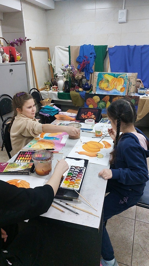 Нужно принести 2 акварельных листа А3, акварель, кисти, палитру, ножницы, клей-карандаш.