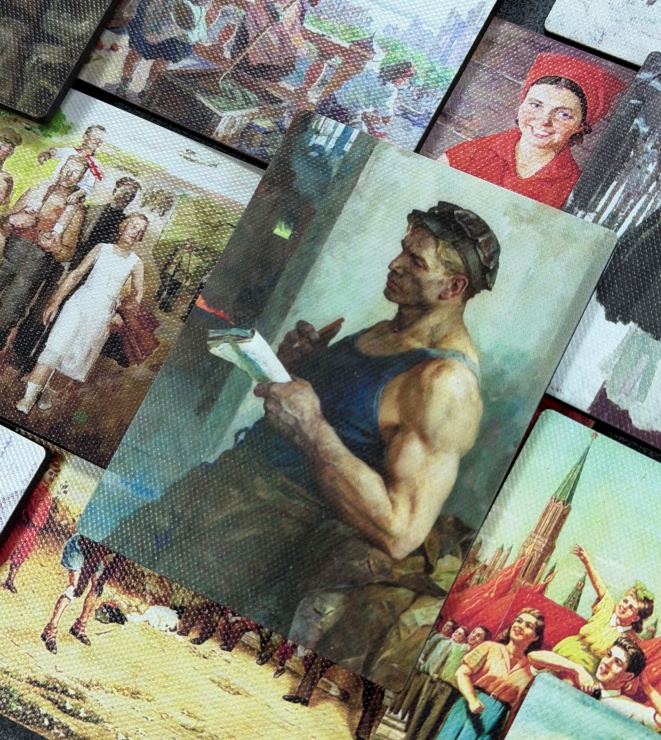 Выставка включает более ста произведений советской живописи, графики, скульптуры, декоративно-прикладного искусства из фондов музея, созданных в 1920–1980-е годы в духе социалистического реализма.