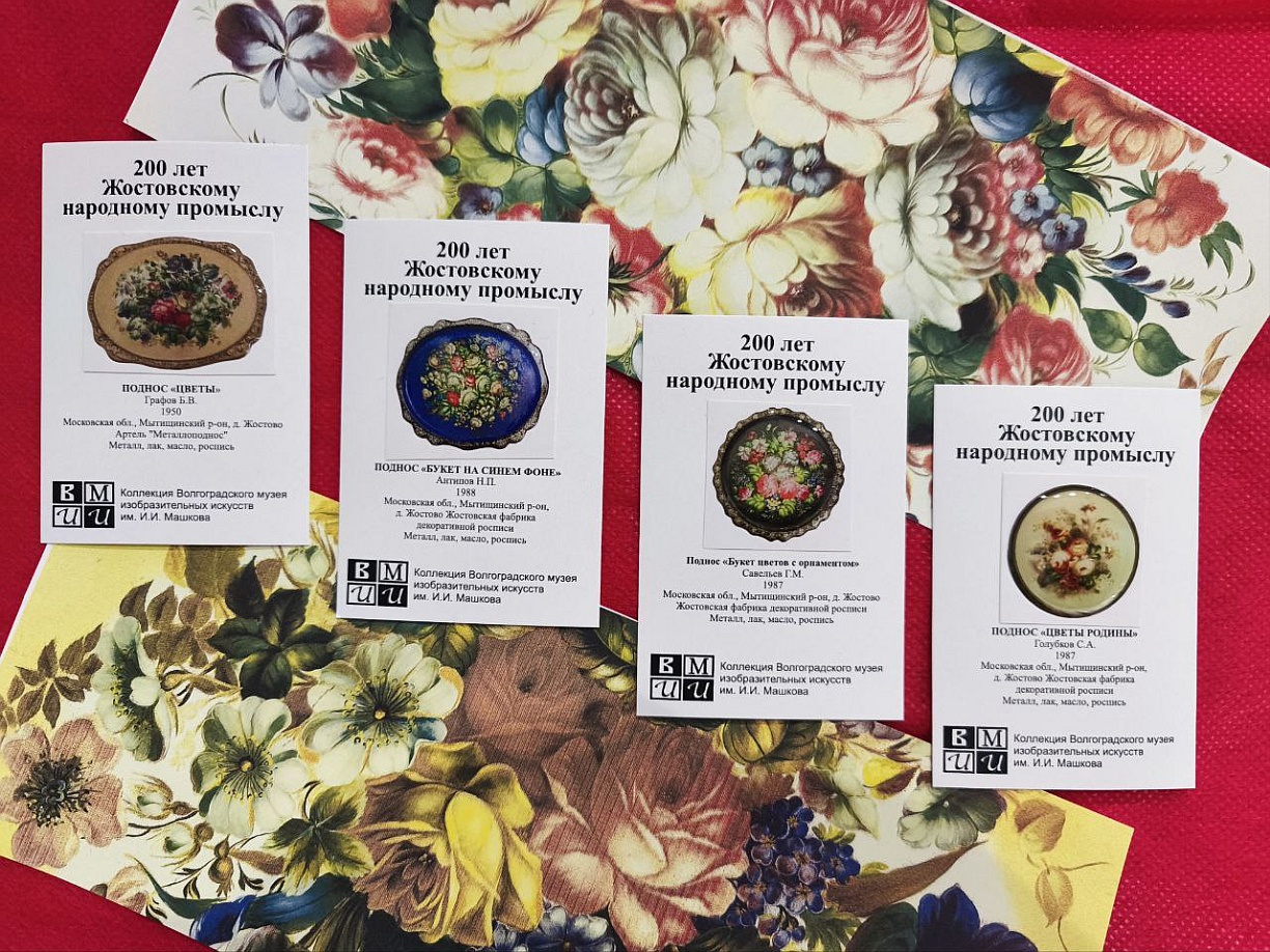 В коллекции единственного в регионе художественного музея — Волгоградского музея изобразительных искусств им. И.И.Машкова — хранятся подносы с жостовской росписью. Они являются авторскими произведениями лучших мастеров Жостова: Б.В.Графов, Н.П.Антипов, Г.М.Савельев, С.А.Голубков, Е.П.Лапшин и др. Эти подносы экспонировались на Всесоюзных и Всероссийских выставках и заслужили достойное признание как профессионалов, так и любителей народного традиционного русского искусства. Закупленные после экспозиций подносы стали частью Музейного фонда Российской Федерации.