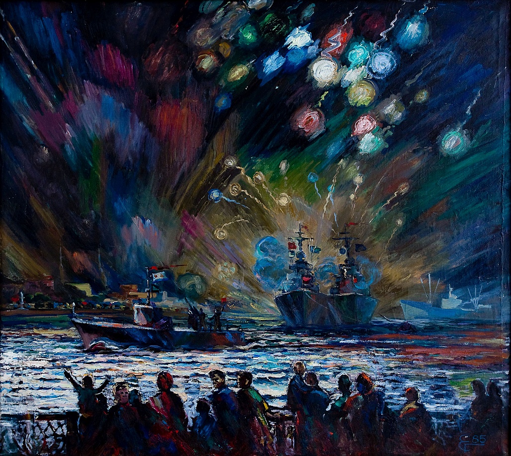 Евгений Никанорович 9 мая 1945 года вспоминал так: «Долгожданная Победа! И незабываемый салют Победы. И как тогда, когда отмечали Победу, загорелось ночное небо! Было очень торжественно, красиво, много-много радости!».