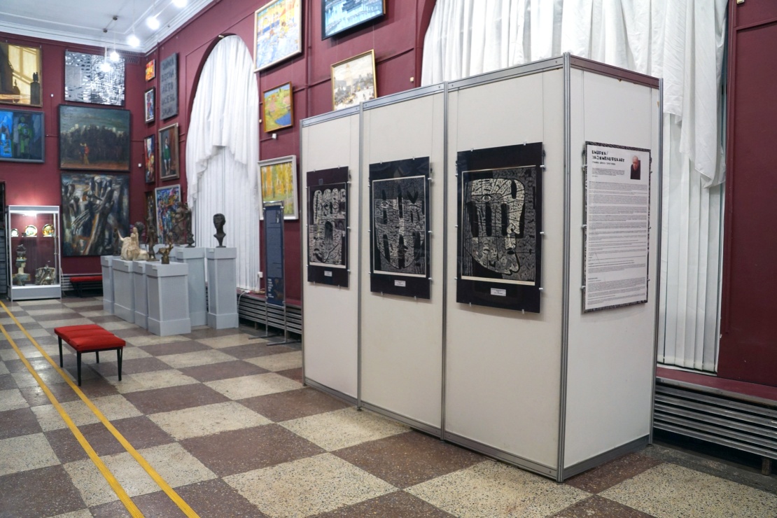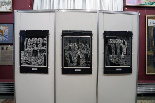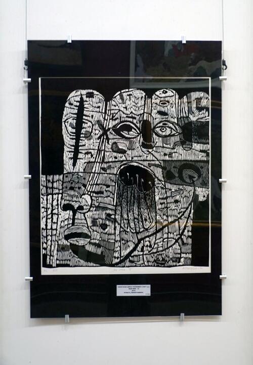 Особая ценность графического изображения скрыта в некоторой недосказанности, беременной глубоким обобщением, емкостью образов, в условном изображении предмета или лишь намека на него. Каждый вид графики имеет свои особенности, которые зависят от материала и используемых инструментов. Эта зависимость диктует художнику способ трансляции его воображения, мысли на плоскость листа. Кажется, что самый «дружелюбный» и послушный для художника инструмент перевода нематериального в формат печатного произведения - линогравюра. Он (лист линолеума, материала, который появился в арсенале художников в конце XIX века) легко поддается, не спорит, послушен резцу мастера. Художник режет линолеум отдельными мелкими штрихами, где-то взрыхляя поверхность и создавая шероховатую фактуру человеческой кожи, формируя складки губ, где-то подчеркивая объем, тяжелую монументальность профиля. Лица парят в условном абстрактном пространстве, обозначенном контрастными белыми и черными формами. Все оно прочерчено силовыми линиями и сложно построено с заглублениями внутрь листа, с темными провалами в глубину. Они уподобляются буквам на письме. Графемы не поддаются расшифровке и существуют как таинственные знаки, часто выполняя орнаментальные функции, но, как еще не прочитанные иероглифы, содержат скрытый смысл. Разные глаза, то «рыбьи», то смотрящие в разные стороны «арлекины», то напоминающие моллюски-жемчужины в устричной раковине, сами по себе чрезвычайно важны. Еще Филонов высказал идею о «знающем глазе» в противовес «видящему глазу», который не проникает за поверхность вещей. Глаза, как и все лицо, собираются из отдельных элементов как тело из клеток, создают скрытую жизнь материи. Эти хтонические образы, полные иррациональной силы, обращают нас к древним архетипам, богам земли и неба. Голова человека воспринимается как модель мироздания. Чей-то профиль выдвигается из-за кулис на освещенное пространство сцены («Мое имя-10»), меланхолично, готово заплакать «гобеленовое полотно» «Имени-11», катастрофично, со смещением пластов после пережитого ужаса, – «Имя -12», почти комично зооморфное «Имя-13» на козьих ножках.«Полное определение моего искусства – это триллер…то есть необычное построение композиции и напряженный загадочный сюжет. Вы подумаете, что это фэнтези или фантастика, но это не так», продолжает нас запутывать Айрат Рауфович.