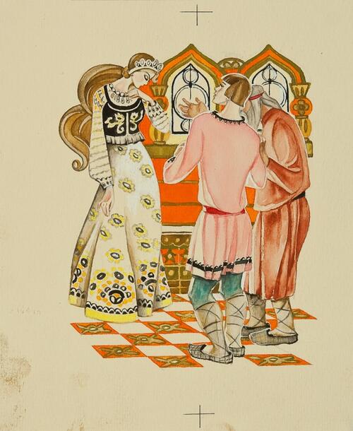 Обширный раздел выставки посвящен иллюстрациям Нинель Пироговой из сборника «Былины». Былина – не сказка, но имеет с ней много общего, в первую очередь, принадлежность к жанру устного народного творчества. На эстампах зритель увидит знакомых с детства персонажей: здесь и русские богатыри Илья Муромец, Алёша Попович и Добрыня Никитич, и новгородский купец Садко, и другие былинные герои.