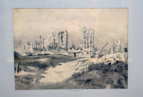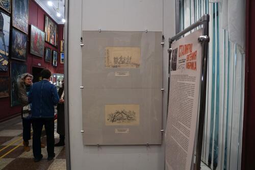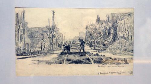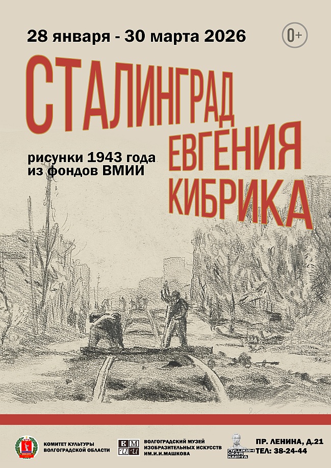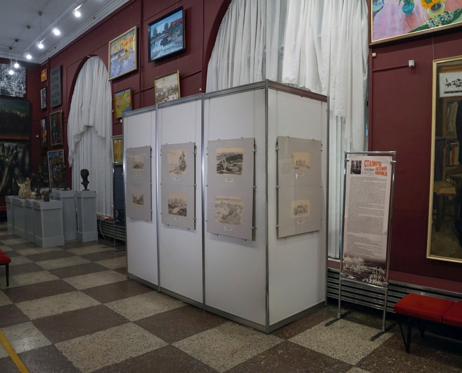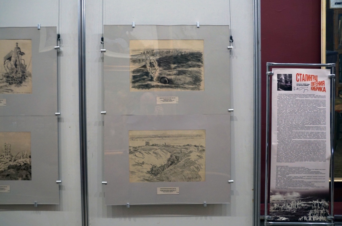 В экспозиции представлены десять рисунков Е.А.Кибрика, одного из самых знаменитых советских графиков, рисовавшего Сталинград по своим непосредственным наблюдениям в сентябре 1943 года, когда он был командирован в Сталинград Комитетом по делам искусств для сбора натурного материала для картины о Сталинградской битве.