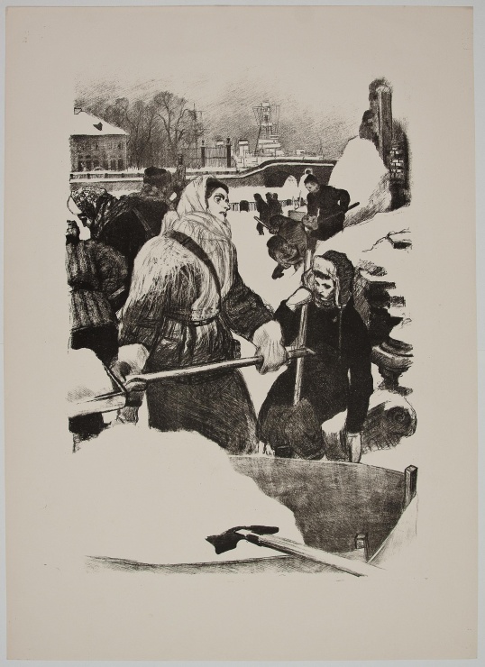«Все герои моих листов не ряженые, а подлинные, живые люди тех блокадных дней, начиная с композиции «В стационар», где я изобразил художника Ярослава Николаева, и кончая девушкой-милиционером на перекрестке у Кировского моста. Я считаю, что вся серия «Ленинград в дни блокады» может считаться и вымыслом художника и одновременно совершенно доподлинным, достоверным документом времени». (А.Ф.Пахомов «Про свою работу»)