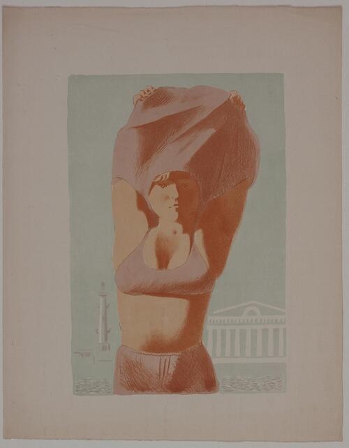 «...наперекор искусству прошлого, которое воспело женское тело сияюще-белым, среди простыней и драпировок, мне хотелось изобразить красоту тела загорелого и не в интимном интерьере, а в местах общественных, на пляже, на стадионе – на солнце. И во всех фигурах, мной изображенных, загорелое тело чередуется с проблесками белой кожи, которая реже всего открывается солнцу...