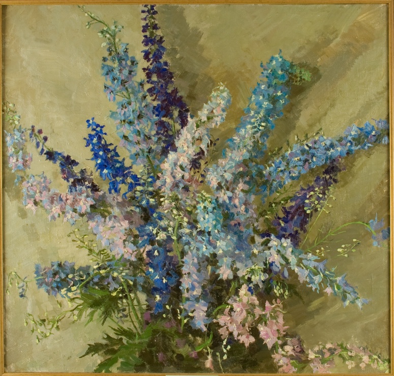 Для человека естественно воспринимать цвета в связке с природными объектами и явлениями. Устойчивые ассоциации «трава – зеленая», «небо - голубое» связаны с коллективным культурным опытом. Умиротворяющий эффект человек ощущает от зеленого цвета снизу и голубого сверху, потому что таково их естественное расположение в природе, как в «Романтической мелодии» А.Д. Лесового. Психологи связали воздействие цвета не только с цветовым тоном, но и с положением цвета в пространстве, как в «Потоке времени» О.А. Гостева, воспевающем совершенство мира. «Татьянин букет» Ю.Н.Ларина - продолжение философского диалога с природой, выразительного по цветочной гамме и спокойного благодаря локальным мазкам и абстрактному построению окружающей среды.
